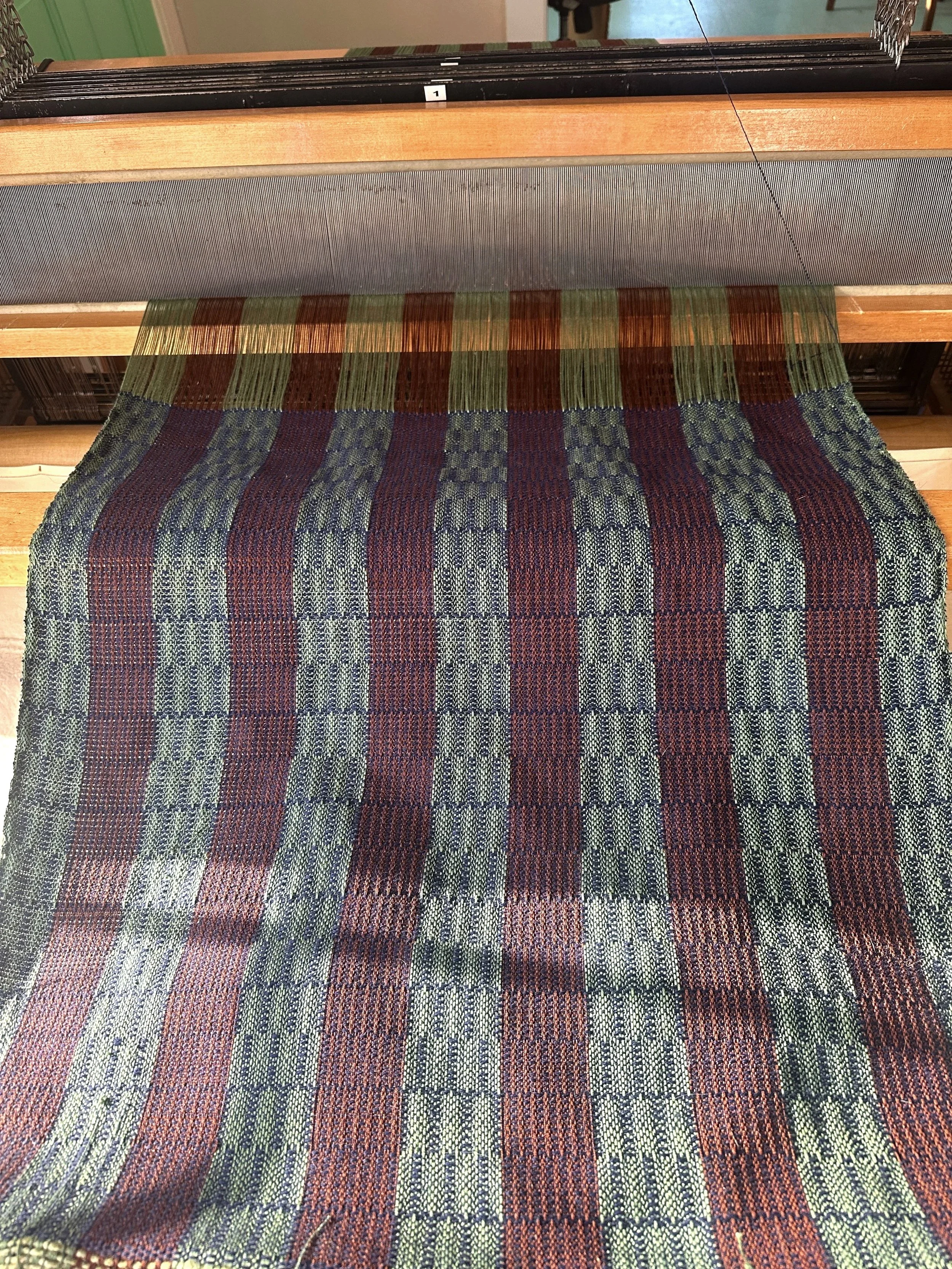 From humble beginnings at the 4-harness loom to continued experiments on up to 8 harnesses and 16 treadles. This work is focused on repeat patterns for upholstery and home.